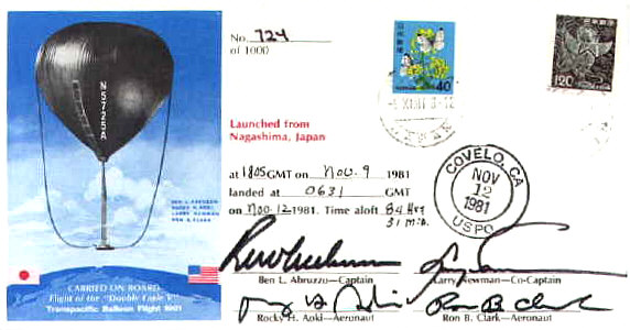 high gas balloon "Double Eagle V". They launched from Nagashima (Japan)
