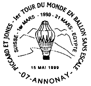 "Breitling Orbiter 3" at 8:05 GMT from Chateau d'Oex in the Swiss Alps and flew over Italy, Mediterranean, Spain, Morocco,