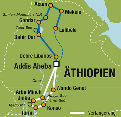 Äthiopien 2010 Landkarten und Reiseroute |