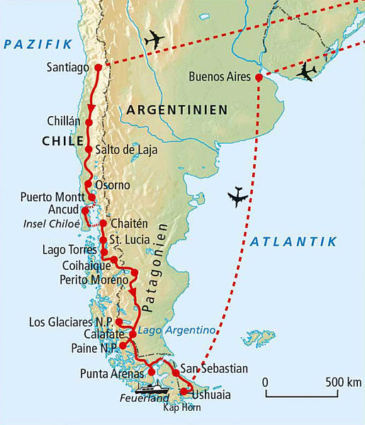 | Patagonien und Feuerland 2006 Landkarten und Reiseroute |