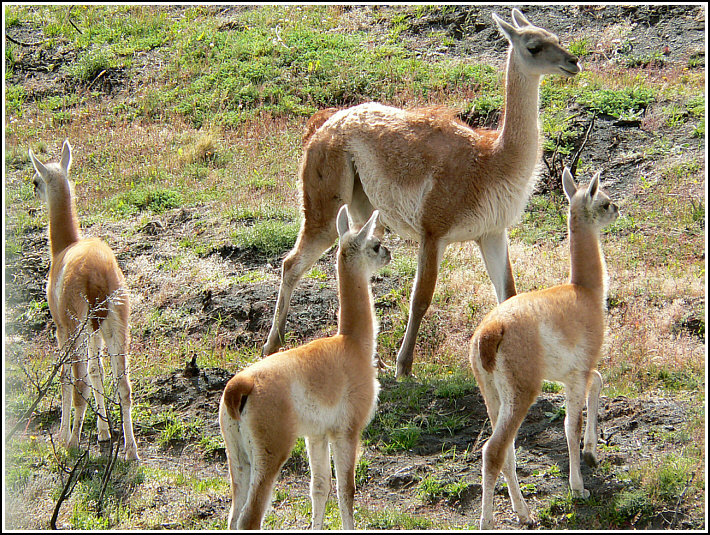 - Einfahrt in den Nationalpark Torres del Paine, Fotopausen, u.a.: Guanacos am Berghang, Laguna Amarga, Aussichtspunkt am Lago Nordenskjöld mit Blick auf Torres- und Cuernos-Gipfel