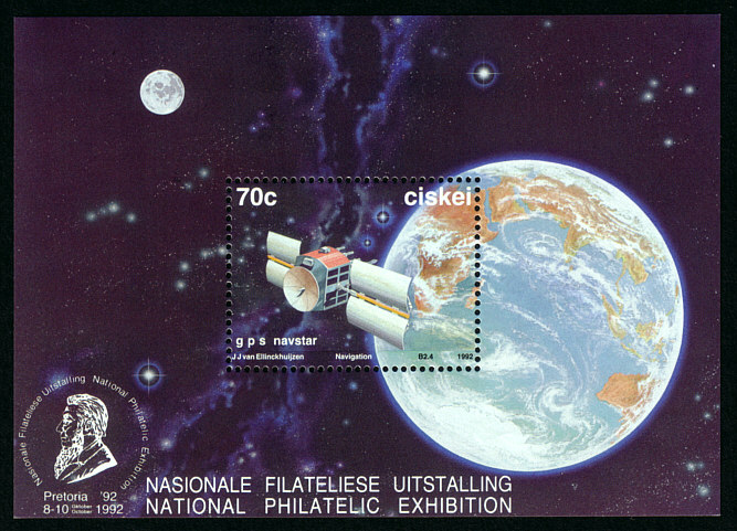 Das Doppler-Messprinzip wurde bereits seit Beginn der Raumfahrt in 1957 zur Bahnbestimmung der Sputnik- und Explorer-Satelliten eingesetzt. Auch die geodätischen Satelliten ANNA 1B und die GEOS-Satelliten (s.o.) hatten Dopplersysteme am Bord. Bereits wenige Jahre nach dem Start der ersten Satelliten wurden spezielle auf dem Dopplereffekt basierenden Navigationssatelliten in den All gebracht. Dieses erste, amerikanische Satelliten-Navigationssystem - Naval Navigation Satellite System (NNSS), auch unter dem Namen TRANSIT bekannt, wurde durch die US-Marine seit 1960 v.a. zum Zweck der Zielführung ballistischer Raketen entwickelt. Bei diesem System kreisten mehrere (4-6) Satelliten auf polaren, beinahe kreisförmigen Umlaufbahnen in ca. 1100 km Höhe um die Erde, die von ihnen wie in einem genau ausgemessenen Käfig umschlossen war. Der erste Satellitenprototyp des TRANSIT-Systems (TRANSIT 1B) wurde am 13. April 1960 gestartet. Bereits 1964 wurde das System in Betrieb genommen und kurze Zeit später auch für zivile Nutzung zur Verfügung frei gestellt. Nur wenige Jahre nach dem Start dieses Doppler-Navigationssystems konnte man erstmals internationale, weit ausgedehnte Bahn- und Landesvermessungen mit der absoluten Positionsgenauigkeit von etwa einem Meter durchführen (bei einer normalen Echtzeit-Navigation waren die Positionsgenauigkeiten von bis zu 50 m möglich). Man erreichte also bei geodätischen Verfahren Genauigkeiten, wie bei der optischen Satellitenmessung, aber die Doppler-Technik war für jeden Besitzer der entsprechenden Dopplerempfänger zugänglich. Um diese Positionsgenauigkeiten zu ereichen, waren Beobachtungssessionen von einigen Tagen nötig. Es wurden zahlreiche geodätische Doppler-Kampagnen durchgeführt, um lokale, regionale und globale Stationsnetze zu vermessen und ihre gegenseitige Lage genau festzulegen. Bis Anfang der 70er Jahre wurde ein erdumspannendes Netz aufgebaut, das die bisherige Genauigkeit um das Zehnfache steigerte. Die Doppler-Beobachtungsverfahren haben die bisherigen optischen methoden der Satellitengeodäsie verdrängt. Das NNSS (TRANSIT) spielte eine bedeutende Rolle in der Satellitengeodäsie bis in den 90er Jahren das neue GPS-Navigationssystem (s.u.) vollendet wurde. Als Positionierungssystem wurde TRANSIT am Ende des Jahres 1996 abgeschaltet, wurde aber als Instrument für die Überwachung der Ionosphäre weiterverwendet. Die nachfolgende Briefmarke zeigt den Satelliten TRANSIT 2A (Prototyp), der am 22. Juni 1960 in den All geschickt wurde (die Bezeichnung auf der Briefmarke als meteorologischer Satellit, ist wohl falsch):