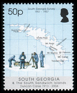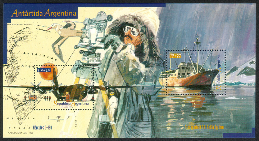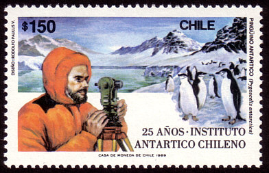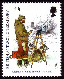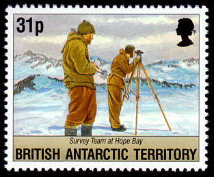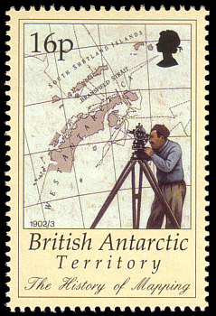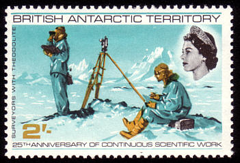 Die Abbildung der beiden nachfolgenden Briefmarken (Norwegen, 42 KR und BAT, 16p) zeigt den norwegischen Natur- und Polarforscher Carsten Borchgrevink vor dem Schiff "Southern Cross" bei Vermesungsarbeiten mit einem Theodoliten während seiner Expedition zum Südpolarland 1898-1900:
