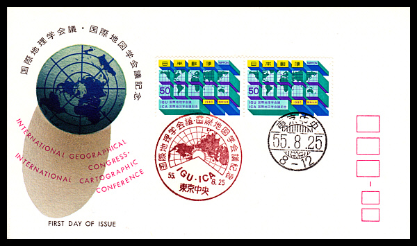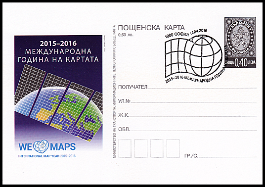 ![]() 8. Internationale Kartographische Konferenz in Moskau, Sowjetunion, 3.-10. August 1976: ![]() 10. Internationale Kartographische Konferenz in Tokio, Japan, 25. August - 1. September 1980: ![]() ![]() ![]() ![]() Während der Konferenz fand in Tokio eine Ausstellung von japanischen Karten, die auch mit einem Sonderstempel gewürdigt wurde: ![]() 12. Internationale Kartographische Konferenz in Perth, Australien, 4.-13. August 1984: ![]() 13. Internationale Kartographische Konferenz in Morelia, Mexico, 12. - 21. October 1987: ![]() 15. Internationale Kartographische Konferenz in Bournemouth, Großbritannien, 23. September - 1. October 1991: ![]() 17. Internationale Kartographische Konferenz in Barcelona, Spanien, 3.-9. September 1995: ![]() ![]() ![]() 18. Internationale Kartographische Konferenz in Stockholm, Schweden, 23.-27. Juni 1997: ![]() ![]() 20. Internationale Kartographische Konferenz in Beijing, China, August 6-10, 2001: ![]() Die Internationale Kartographische Vereinigung (ICA) hat mit Unterstützung der Expertenkommission für Geoinformation der Vereinten Nationen die Jahre 2015-2016 zum Internationalen Jahr der Karte (International Map Year - IMY) ausgerufen. Es wurde auf der 27. ICA-Konferenz in Rio de Janeiro in August 2015 feierlich geöffnet und dauert bis Dezember 2016. Ziel des IMY ist es, weltweit auf die wachsende Bedeutung von Karten und Geoinformationen in der modernen Gesellschaft hinzuweisen. IMY unterstützt verschiedene Aktivitäten, um die Kunst, Wissenschaft und Technologie zur Herstellung und Verwendung von Karten und Geoinformationen der breiten Öffentlichkeit zu präsentieren. Dazu wurde auch ein spezielles Logo entworfen, die den Schriftzug "We love maps" - tlw. mit einem Herz (als stilisierte Landkarte in Stab-Wernerscher Projektion) - darstellt. Die Post Bulgariens hat aus diesem Anlass am 14.04.2016 eine Postkarte herausgegeben und einen Sonderstempel verwendet. ![]() ![]() |