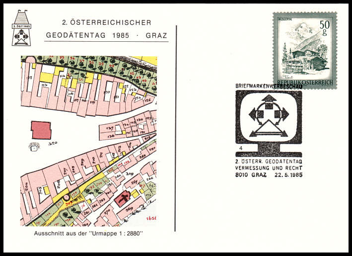 Gegründet wurde der Verein in Wien bereits am 3. Mai 1903, damals unter dem Namen "Verein der österreichischen k.k. Vermessungsbeamten". Im April 1919, nach dem Ende des 1. Weltkrieges und dem Zusammenbruch der Monarchie, entstand der "Deutsch-österreichische Geometerverein", dessen Name auf Grund der politischen Entwicklungen Ende 1919 in "Österreichischen Geometerverein" geändert wurde. Im Jahre 1929 wurde der Vereinsname in "Österreichischer Verein für Vermessungswesen" abgeändert. Dieser Verein wurde 1938 aufgelöst und konstituierte sich erst 1948 neu. Am 12. April 1973 entstand nach dem Zusammenschluß mit der "Österreichischen Gesellschaft für Photogrammetrie" der "Österreichische Verein für Vermessungswesen und Photogrammetrie". Schließlich wurde der Verein im Oktober 1993 auf Grund der aktuellen technischen Entwicklungen in "Österreichische Gesellschaft für Vermessung und Geoinformation" umbenannt. Die Österreichische Gesellschaft für Vermessung und Geoinformation ist der Veranstalter des Österreichischen Geodätentags, der alle 3 Jahre stattfindet. Der 1. Österreichische Geodätentag wurde in der Zeit vom 1.-4. September 1982 gemeinsam mit dem 66. Deutschen Geodätentag in der Wiener Stadthalle veranstaltet und war ein großer Erfolg gewesen: ![]() ![]() Der 2. Österreichische Geodätentag fand im Mai 1985 in Graz unter dem Motto "Vermessung und Recht" statt: ![]() ![]() Der 3. Österreichische Geodätentag fand im Mai 1988 in Linz/Donau unter dem Motto "Ingenieurvermessung - Dokumentation der Umwelt" statt: ![]() Der 4. Österreichische Geodätentag fand zusammen mit der 75. Deutschen Geodätentag vom 2.-4.10.1991 in Innsbruck unter dem Motto "Umwelt und Landinformation" statt: ![]() Der 5. Österreichische Geodätentag fand im Oktober 1994 in Eisenstadt unter dem Motto "Vermessung im Aufwind" statt: ![]() Die nachfolgenden Geodätentage wurden philatelistisch leider nicht mehr gewürdigt, auch nicht das 100jährige Jubiläum des OVG, das im Rahmen des 8. Österreichischen Geodätentages im Mai 2003 gefeiert wurde. |